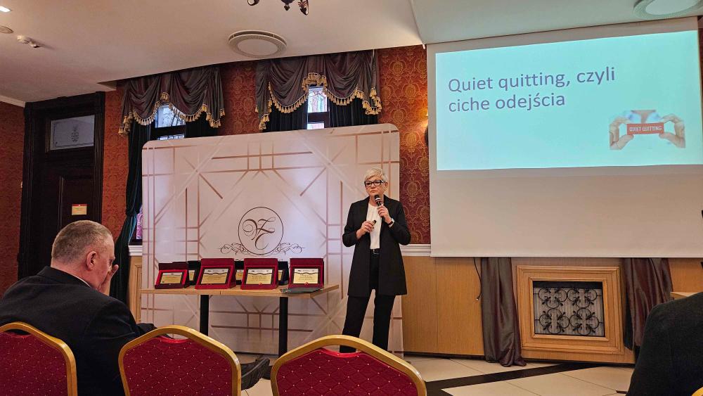 Uczestnicy konferencji mieli możliwość wysłuchania wykładu prof. dr hab. Joanny Moczydłowskiej z Politechniki Białostockiej pt. „Nowe trendy i tendencje na rynku pracy - perspektywa psychologiczna i zarządcza".